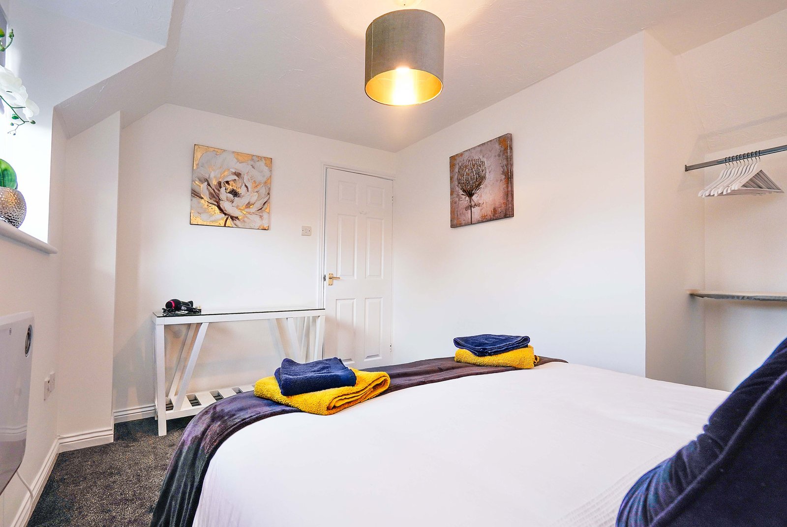 The bedroom is bright and airy, and furnished with a comfortable double bed, fresh linens, and plenty of storage space for your belongings. The room also has natural light, providing a welcoming and relaxing atmosphere.